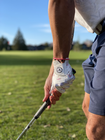 Enjoy a fun day at the course with our latest golf glove design. Classy white leather adorned with a colorful, yet elegant flamingo print.
